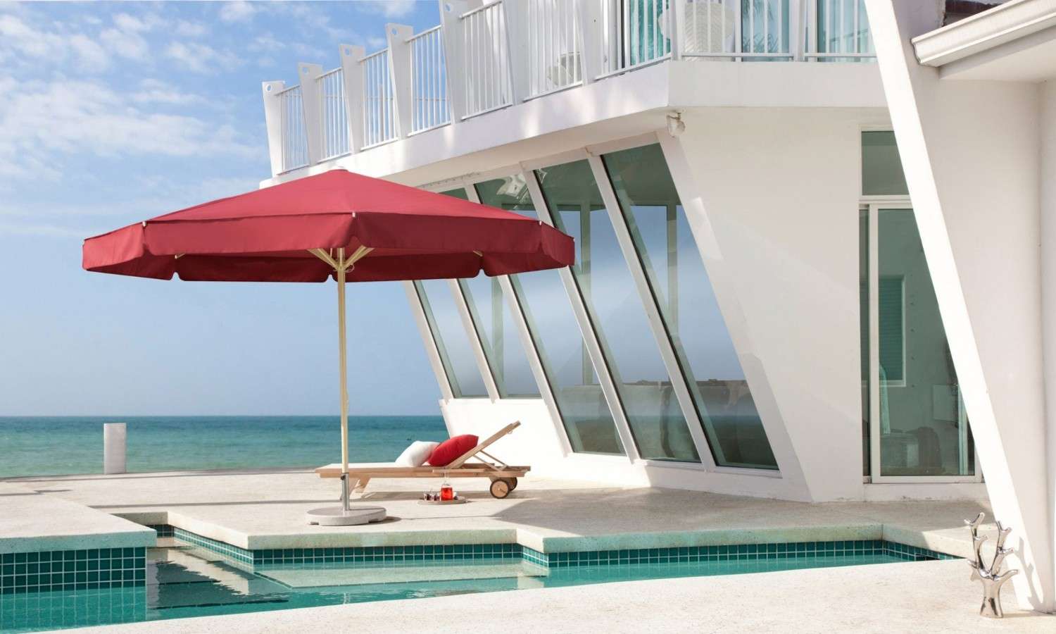 These umbrellas make a massive impact with a 23-foot diameter. They span over a dining area or patio for an expansive area of shade. And while the look is elegant and crisp, Cool-Off umbrellas are equally suitable for a family-friendly playtime environment or an outdoor beach club playing the hottest tunes. Cool-Off umbrellas are durable, high-quality products; made of UV resistant fabric, they provide not only coolness and shade but also skin protection.