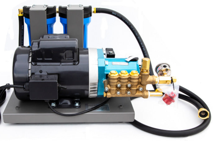 Our high pressure misting pumps are designed to operate at 1000 PSI. The 110V pumps have a standard plug for your home outlet and garden hose adapter to fit your outdoor spigot for the water supply. Upgrade to the remote controlled model and enjoy the ultimate in misting bliss.